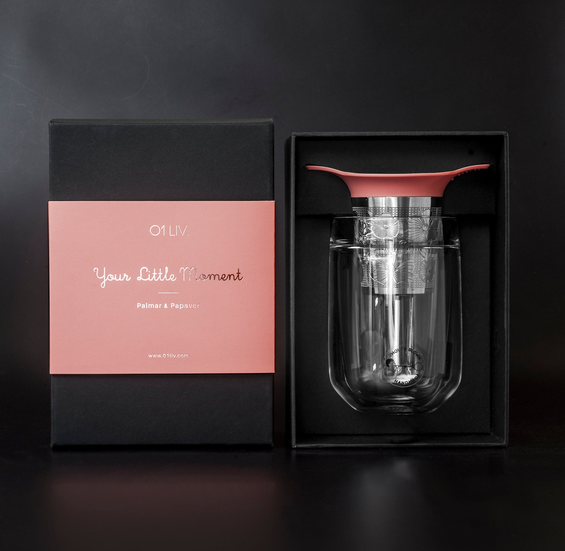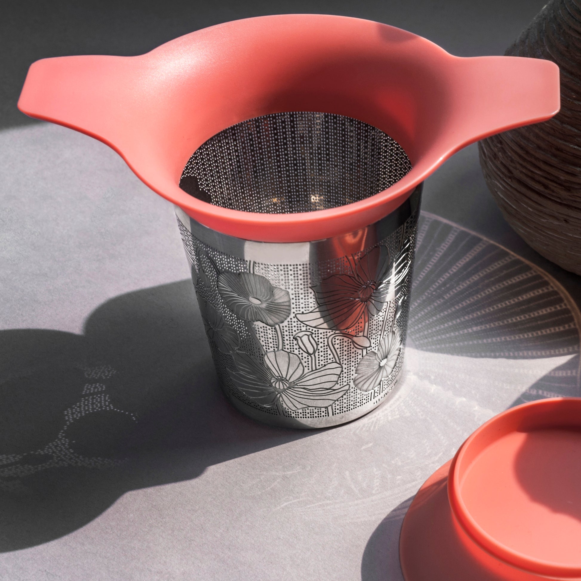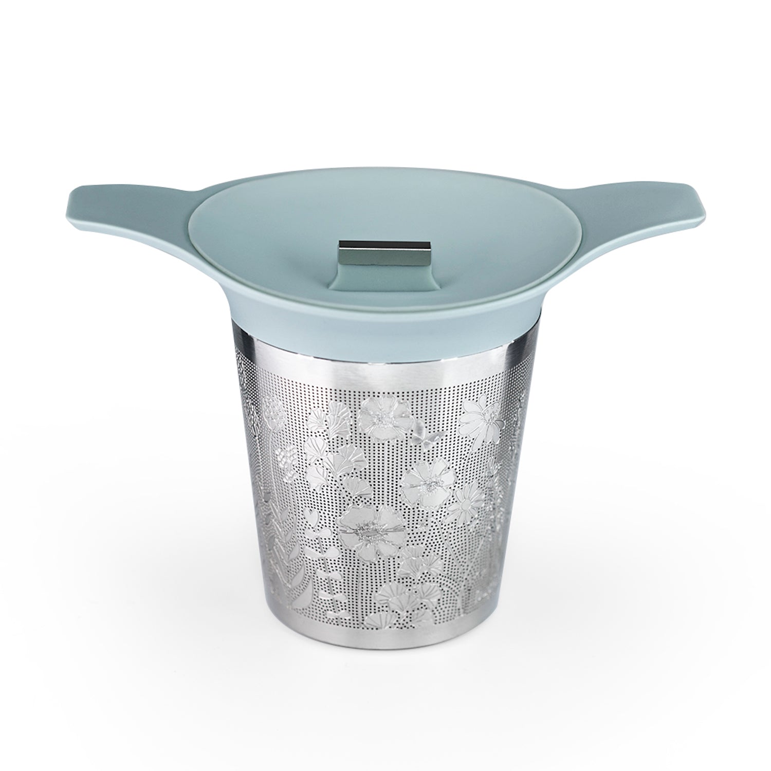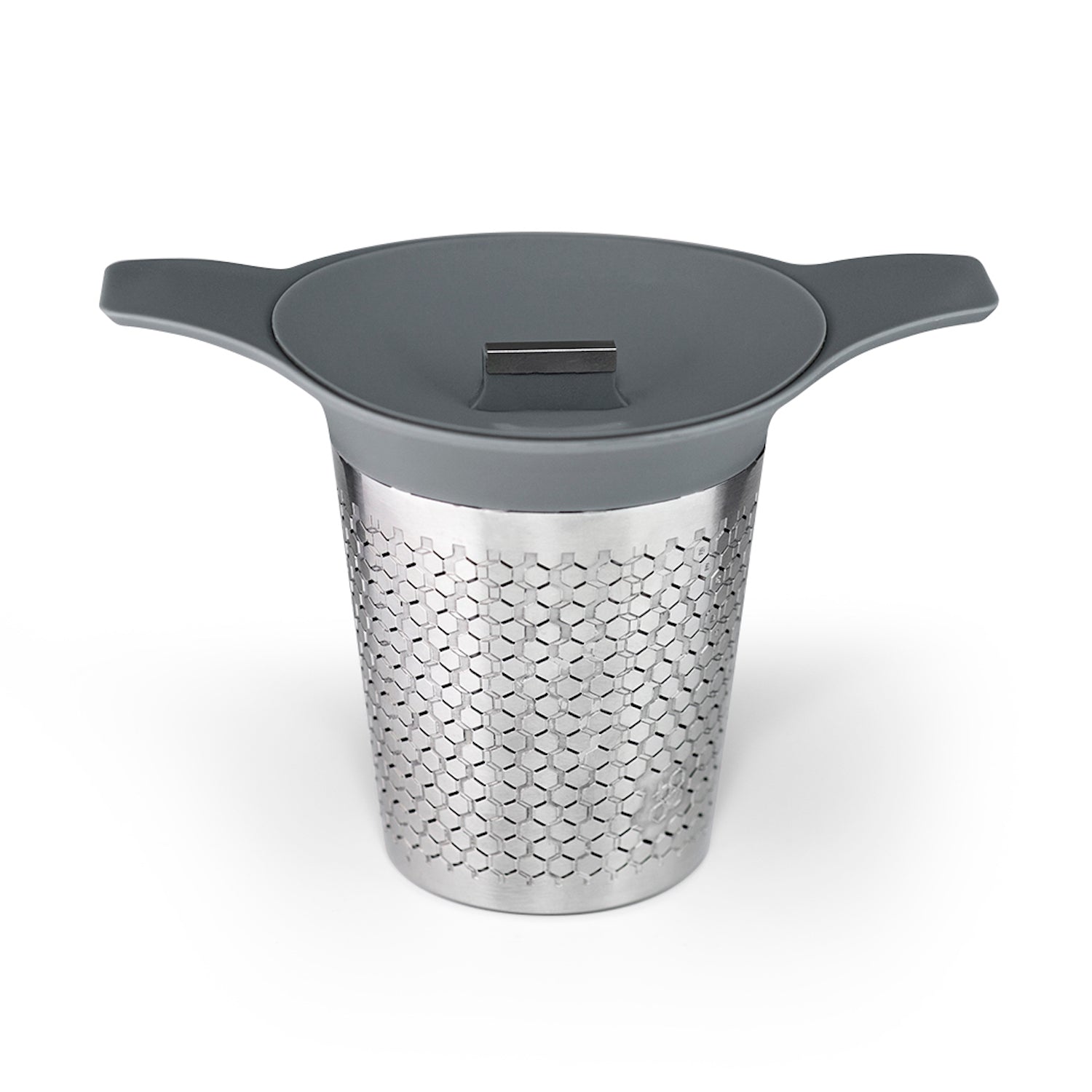 Beautiful design and packaging! The lid fits snug (almost like a suction cup) and doubles as a stand when turned upside down so it doesn't leak tea everywhere when you take the strainer out. The silicone top is gentle on the rim of your glass/mug and the holes are small enough to keep even the tiniest of tea particles contained. Easy to wash and dry. I bought this and the Charis stainless steel one and prefer this one as the silicone lid doesn't retain heat. I had a question regarding shipping, and customer service was swift and pleasant to work with. I'm very happy with my purchases!