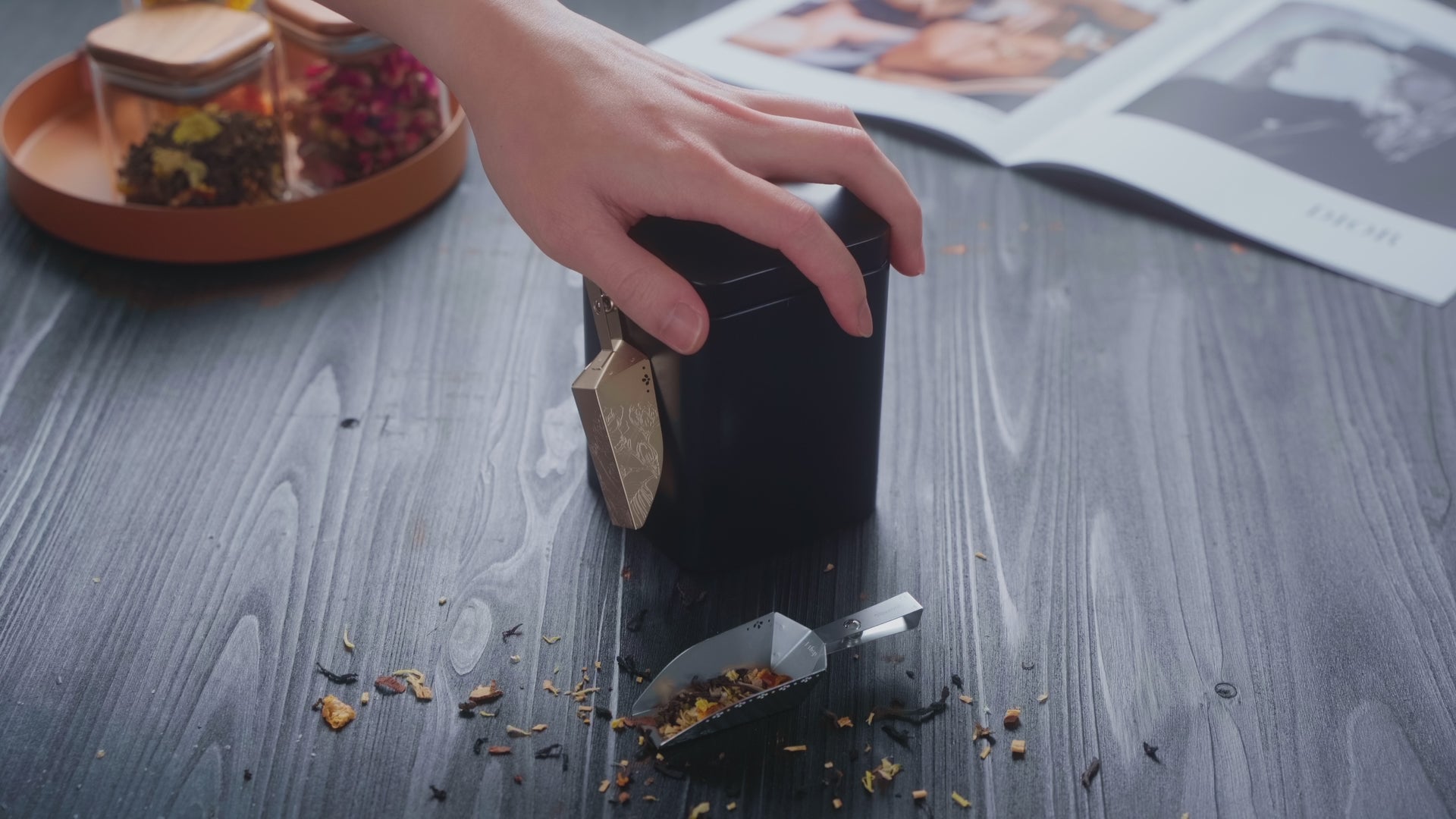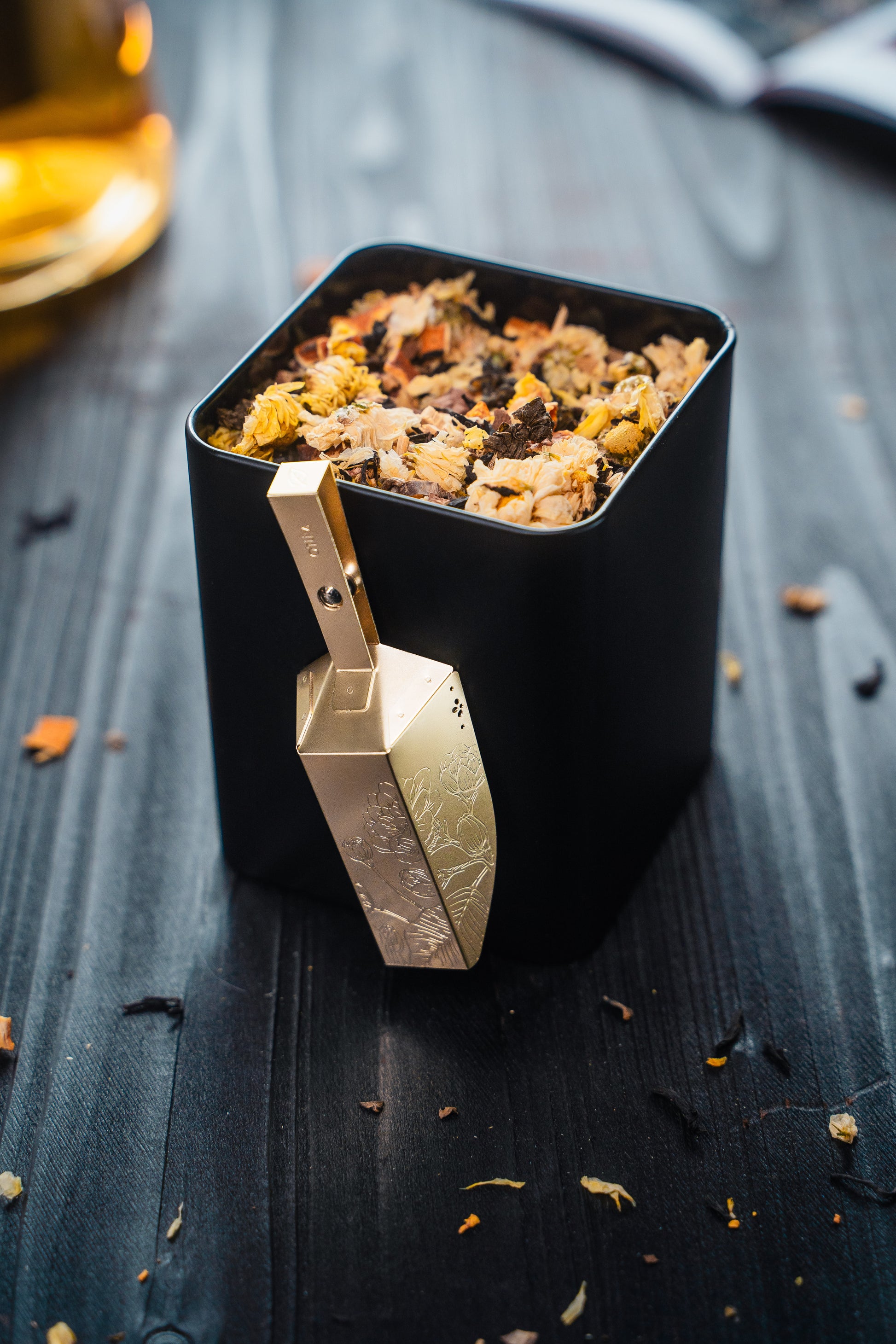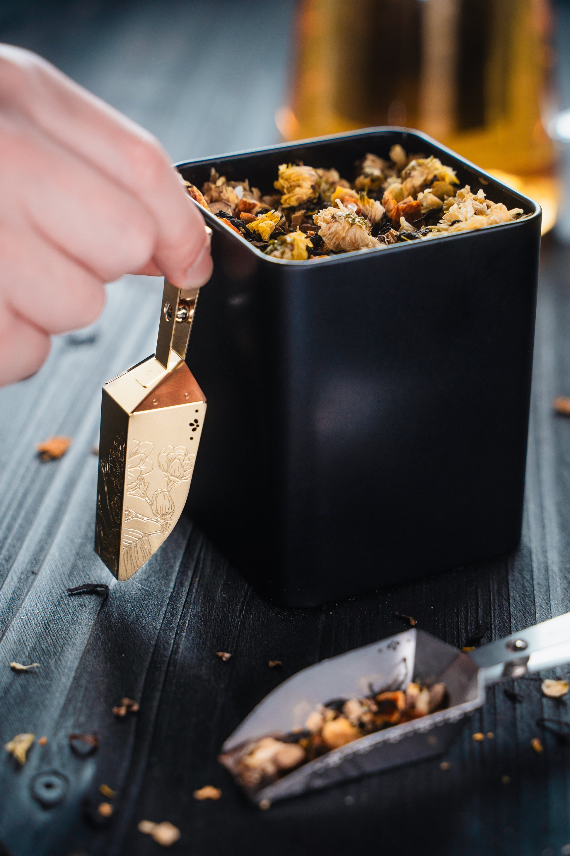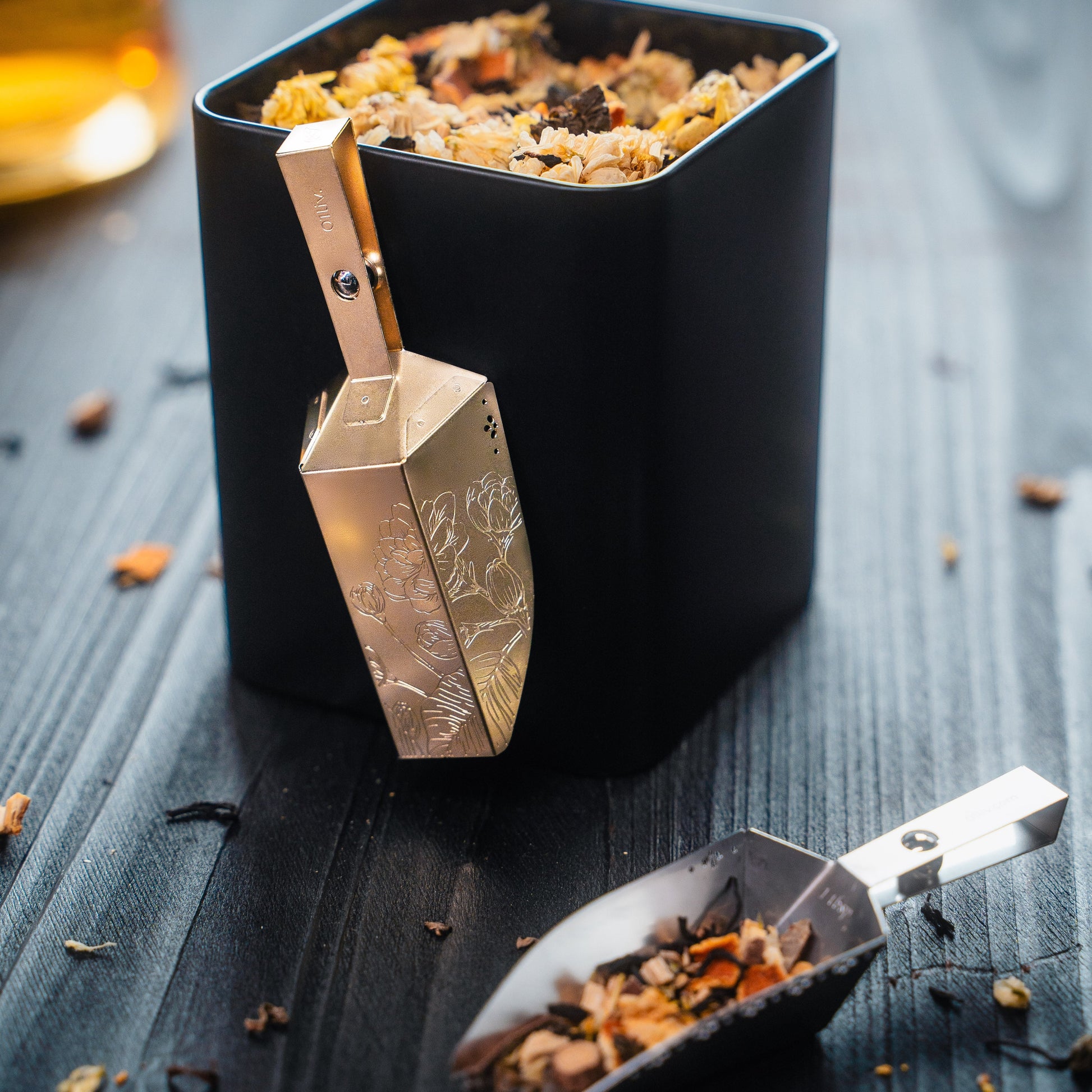 Experience a touch of magic with our unique magnetic scoop – a charming addition to your tea collection that playfully adheres to your tin, putting an end to those hide-and-seek moments! Adorned in elegant patterns and available in shimmering silver or glorious gold, it's designed to complement any tin shape, whether square or round. Embrace the convenience of a scoop that's always right where you need it!