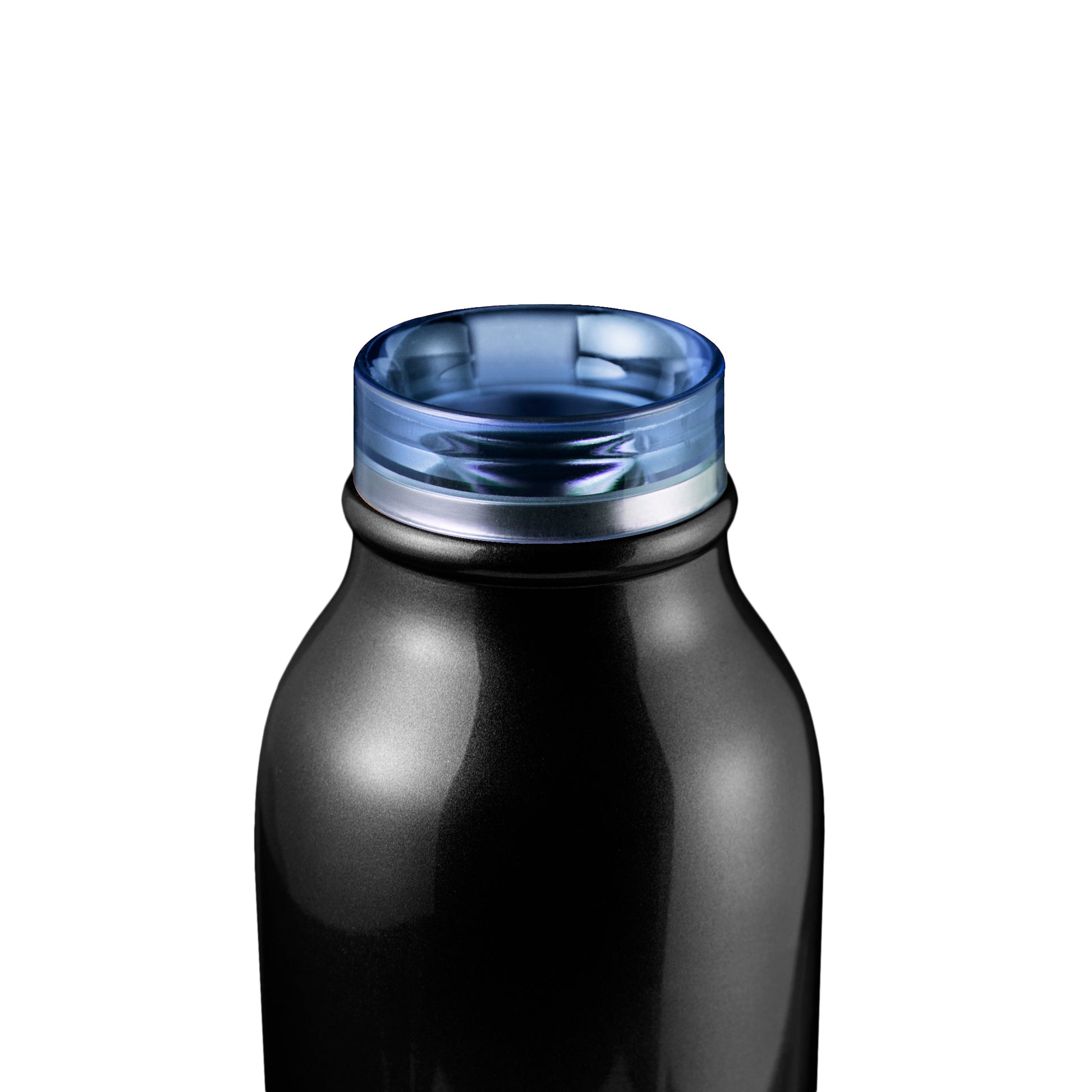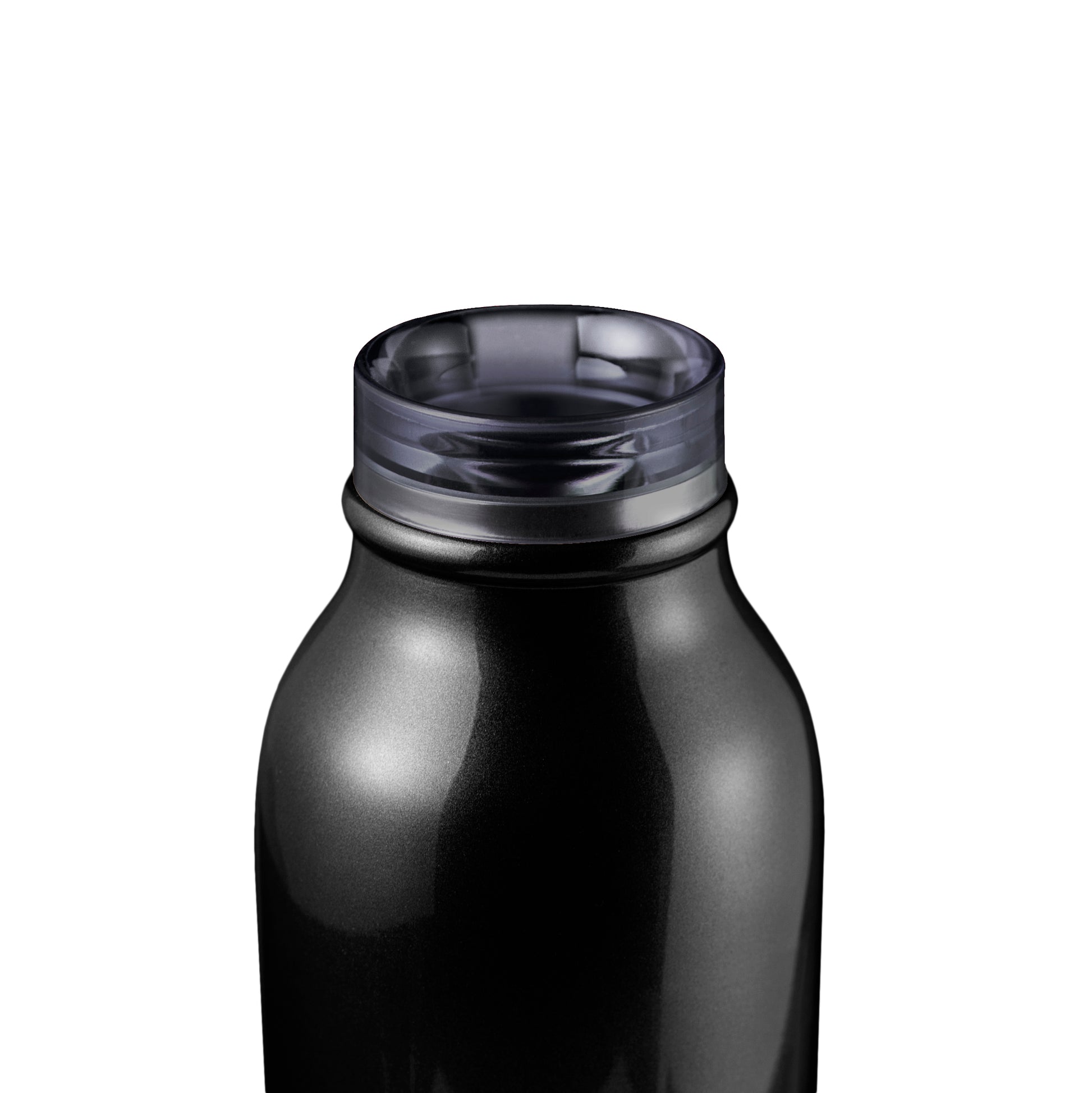 Reusable water bottle, thermal flask in Obsidian Dark. The ability to shine in the darker sky comes from tough practice and experience. Just like obsidian.