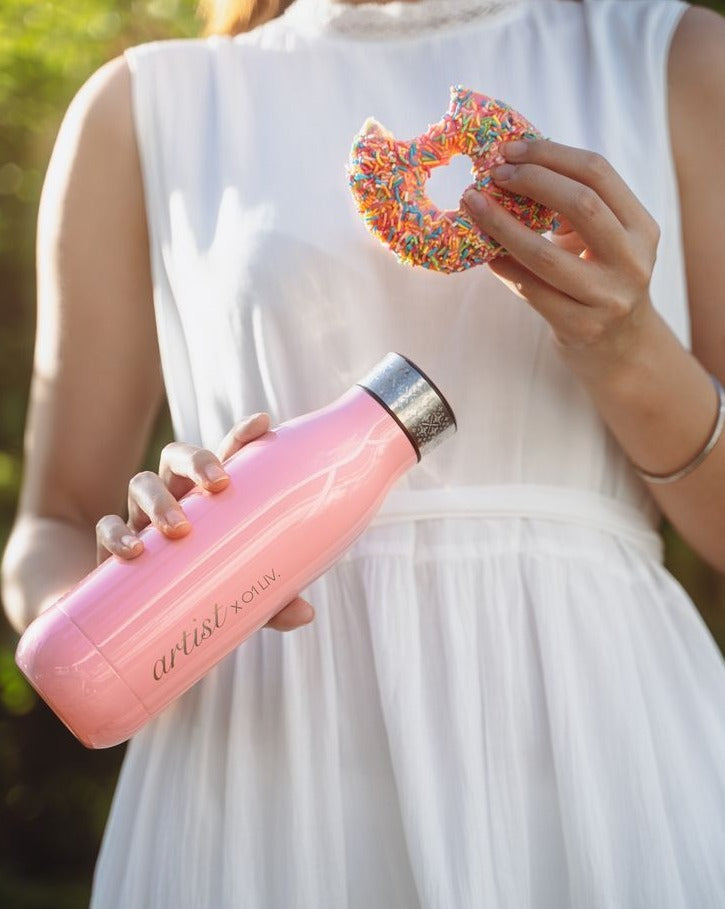 Reusable water bottle, thermal flask in Amaranth Pink. The name Amaranth comes from a Greek mythological flower that was thought to be immortal and grew in the home of the Greek gods on Mount Olympus.