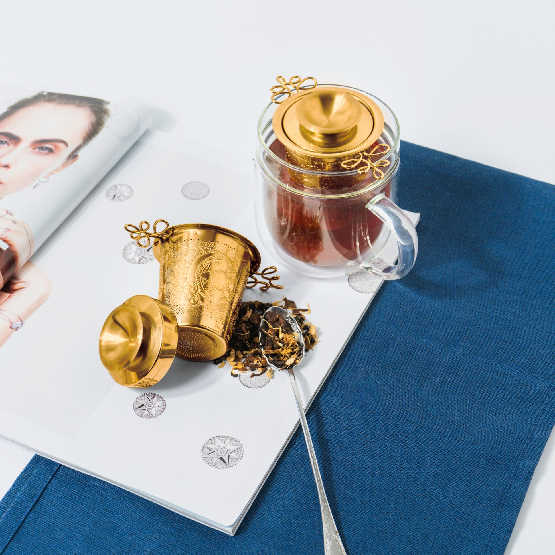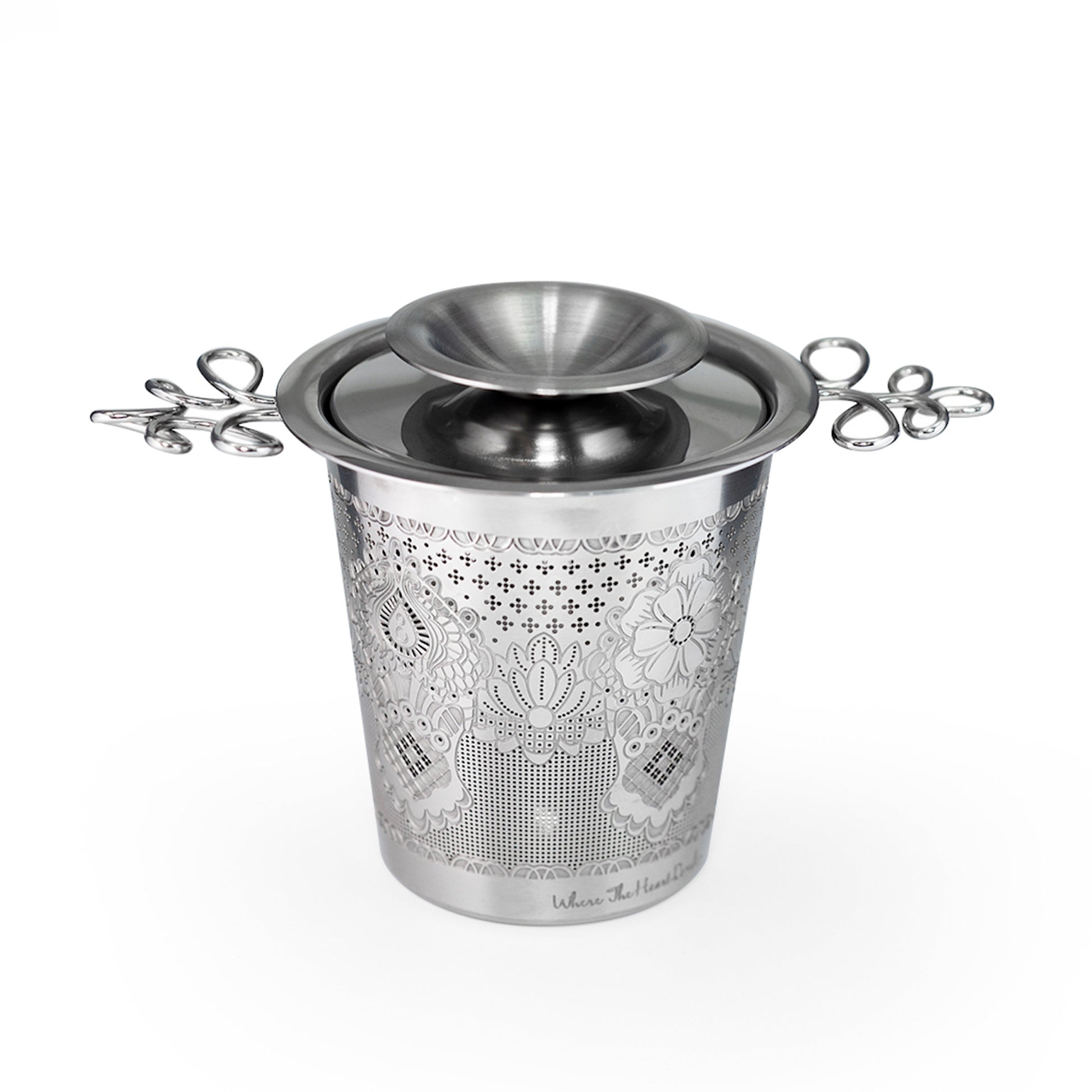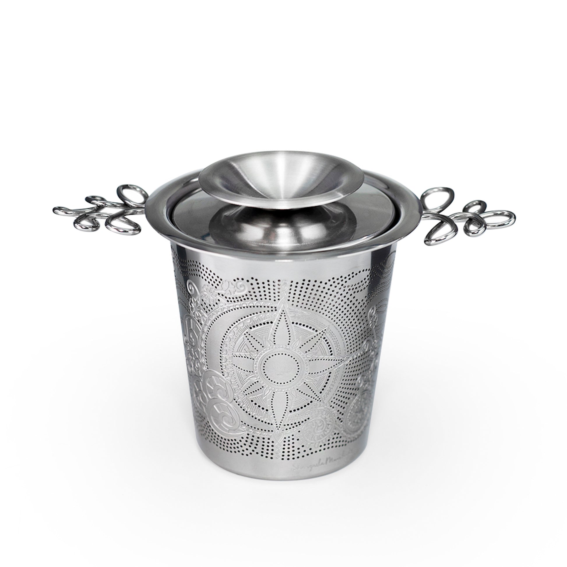Our Mesh Tea Infuser Strainer is a classic design inspired by Greek mythology. The infuser features precise micro-holes that make it an ideal filter for loose-leaf tea. The infuser lid also doubles as a coaster for the basket after brewing, which adds convenience. This infuser is crafted with attention to detail, providing both quality and functionality.